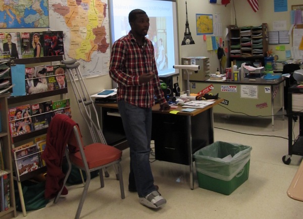 Lisius is still making a full recovery and is returning to Haiti on December 4. He came back to the high schools on November 20, sporting a boot and crutches. He was still a very happy, energetic person who spoke to all of the French classes.