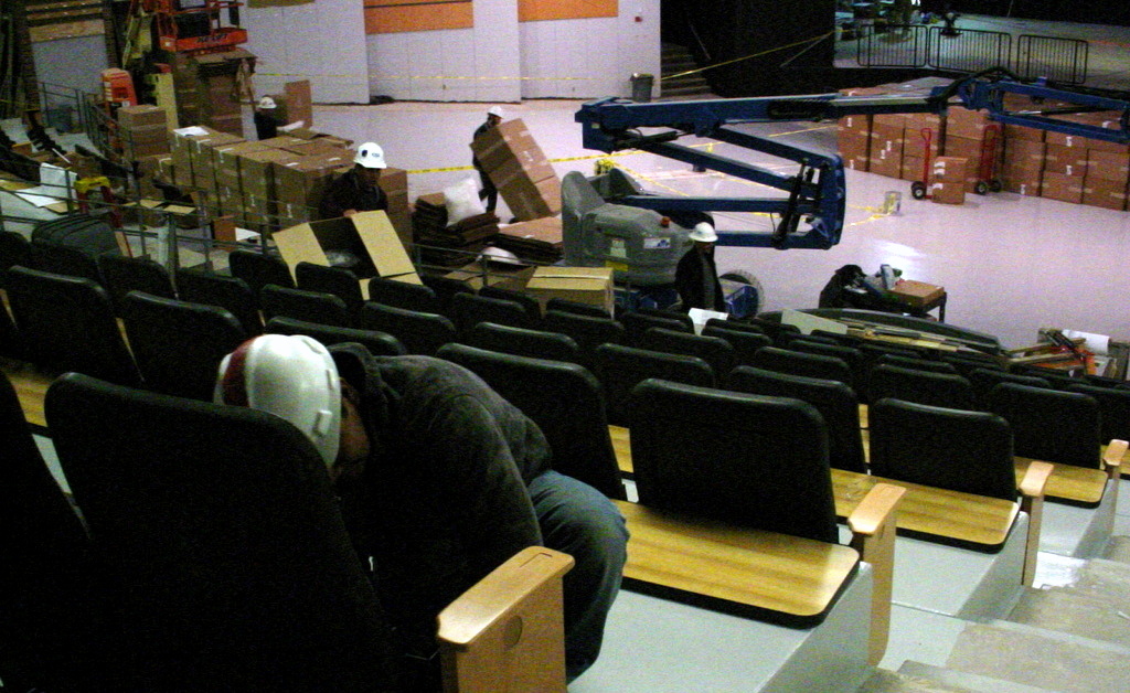 The project is on schedule, according to Ross. In the mess of this construction, new wood panels are being put in, the final chairs are being mounted, painting is nearing completion, and the carpet should be installed by the end of next week. There is still work to be done, such as much of the wiring, but Ross feels confident that construction will be complete by the deadline.