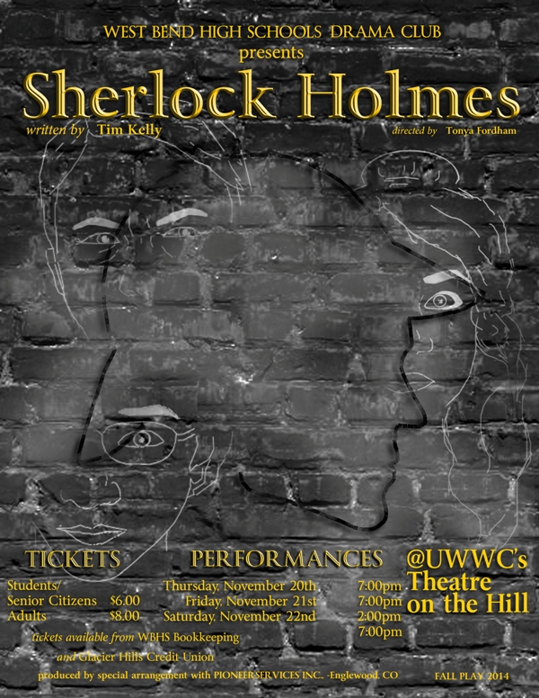 Sherlock Holmes was chosen last year by the Student Production Committee for its “fast-paced, witty script that really is in keeping with the Sherlock Holmes people have become familiar with. We also decided to work on a smaller show that was very character-based rather than something big and showy,” Fordham said.