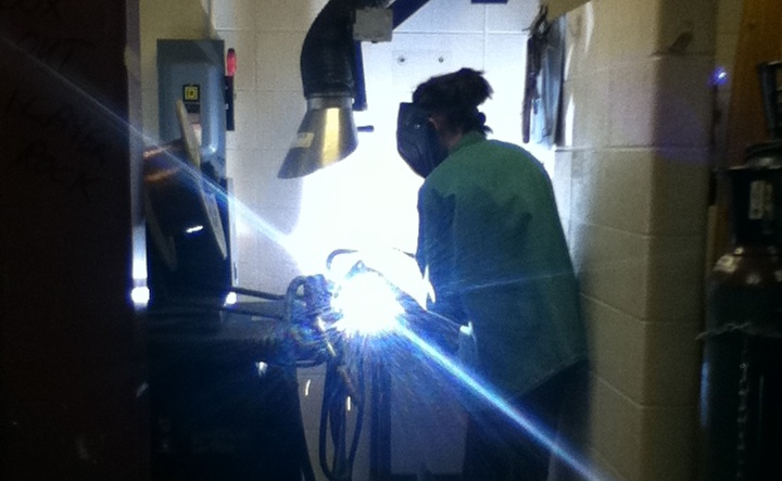 (Top Image: Katie Espen, West sophomore, learns to weld. Photographs by Emily Aamodt, Current Staff.)