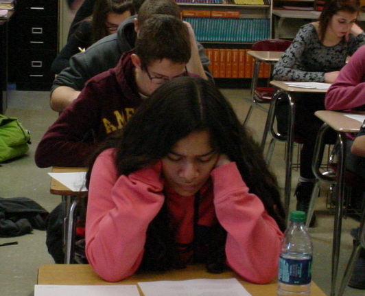 (Images: West Bend students take a district-mandated language arts standardized test on Dec. 9. Photos by Alex Kopish, Editor in Chief.)