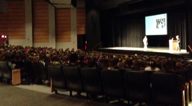 (Image: Students attend the Jan. 28 assembly in the high school auditorium. Photograph courtesy of Jennifer Mesko, West High speech and language teacher.)