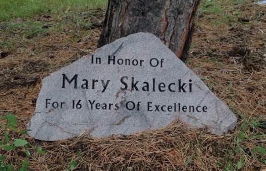 An engraved stone beside Skalecki’s pine tree honored her contributions to the West Bend School District over the years. All of this was planned by the East seniors independently from the faculty. This past year, because of the construction of the Arts Center, the monument was moved nearer to the East entrance.