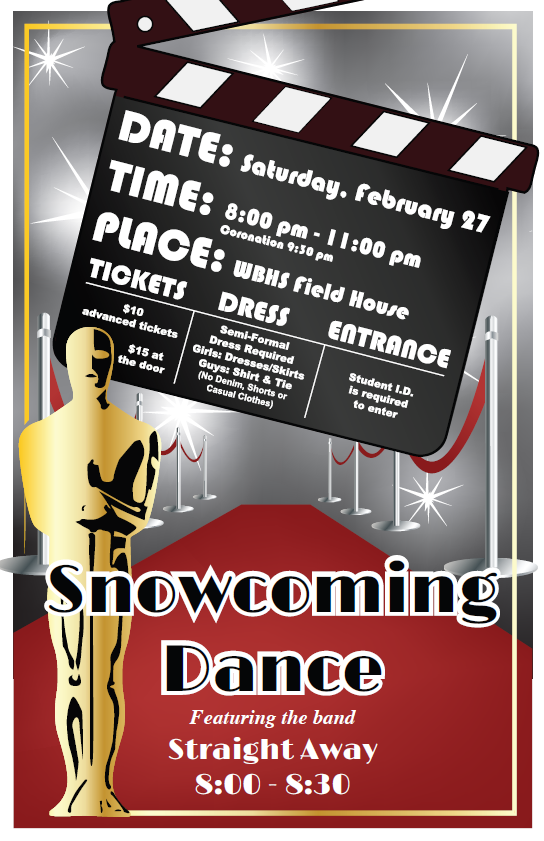 Starting Feb. 22, Snowcoming Week will include dress up days (displayed around the school) that correlate with the charity the West Bend High Schools are supporting each day. Participating in these dress up days will show support for the Nathan & Esther Pelz Holocaust Education Resource Center; Homes for Our Troops; the Youth and Family Project; Movement and Action for Benefit Orphans; MACC Fund; and JDRF, which funds diabetes research. The week will end with a Hollywood-themed dance Saturday night in the fieldhouse.