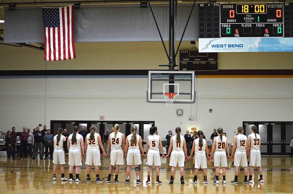 (Top image: The West Bend East girls varsity basketball team moments before tipping off against Oconomowoc Feb. 16 in their final WLT game. Photograph courtesy of Maggie Mollwitz.)
