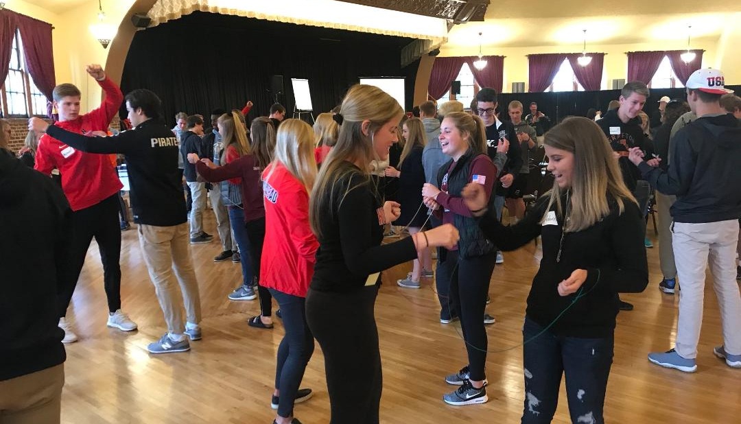 (Top image: East junior Auburn Larson, right, and a Homestead athlete work together to unknot themselves from two pieces of string. Photo courtesy of Denny Ziegler.)
