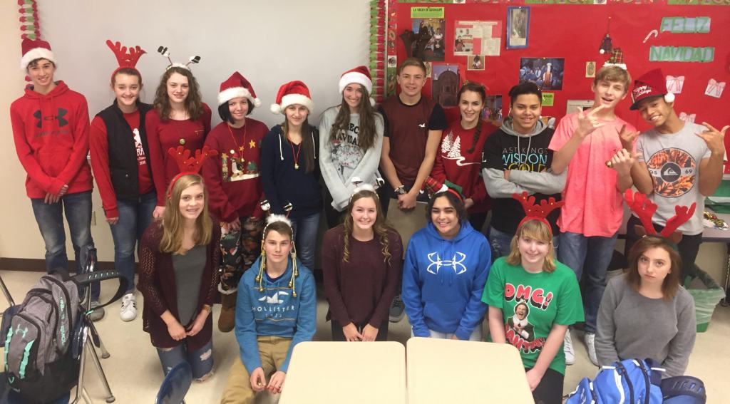 Students in Brenda Henschel’s Spanish classes went Christmas caroling today throughout the West Bend High Schools. The songs were, of course, in Spanish!