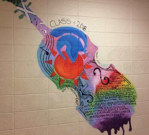 Haas and Polinski completed the painting Friday. They touched up various parts of the mural and added the names of the entire 2018 senior class of orchestra students to the image. Their goal had been to finish the mural before their Scotland trip this spring, according to Polinski, an East senior.