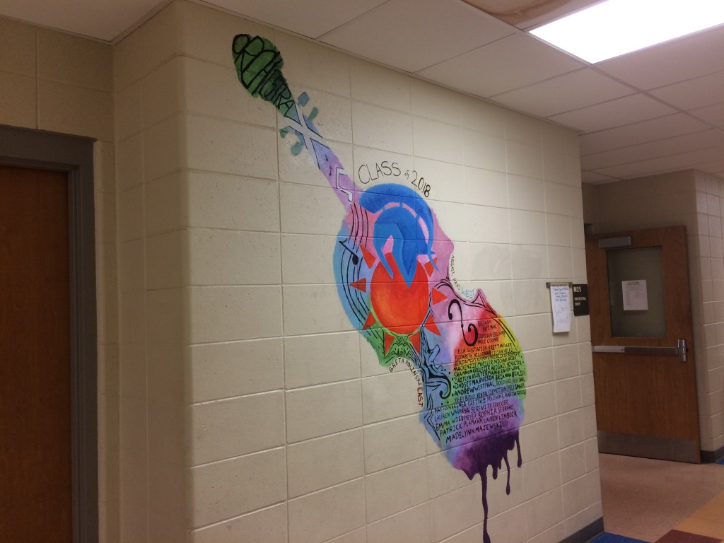 “I’d like to definitely do more; there’s a lot of hallway,” he said. “I’m not even talking about specifically orchestra students, but you know it would be cool to get some choir—like a choir mural and a band mural and just make it a music-themed hallway. I think we should definitely put more on the walls. It’s just kind of plain back here.”