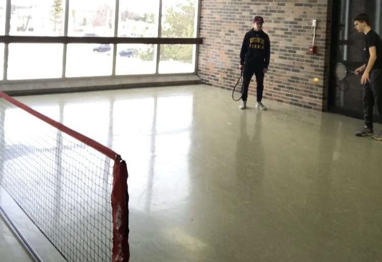 East and West varsity tennis teams have to practice indoors at Pleasant Valley Tennis and Fitness Club due to the blanket of snow covering the outdoor courts. However, there is not enough space for the junior varsity teams, so they practice in the WBHS hallways.
