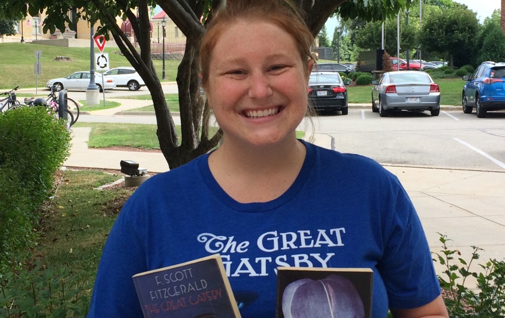 (Top image: Danielle Schumacher displays two of her favorite American works, “The Great Gatsby” and “The Crucible.” Photo by Samantha Dietel, Editor in Chief.)