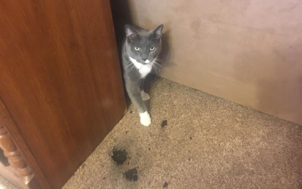 (Image: Mouse the cat returns to the scene of the crime. Photo courtesy of Jack Steele.)