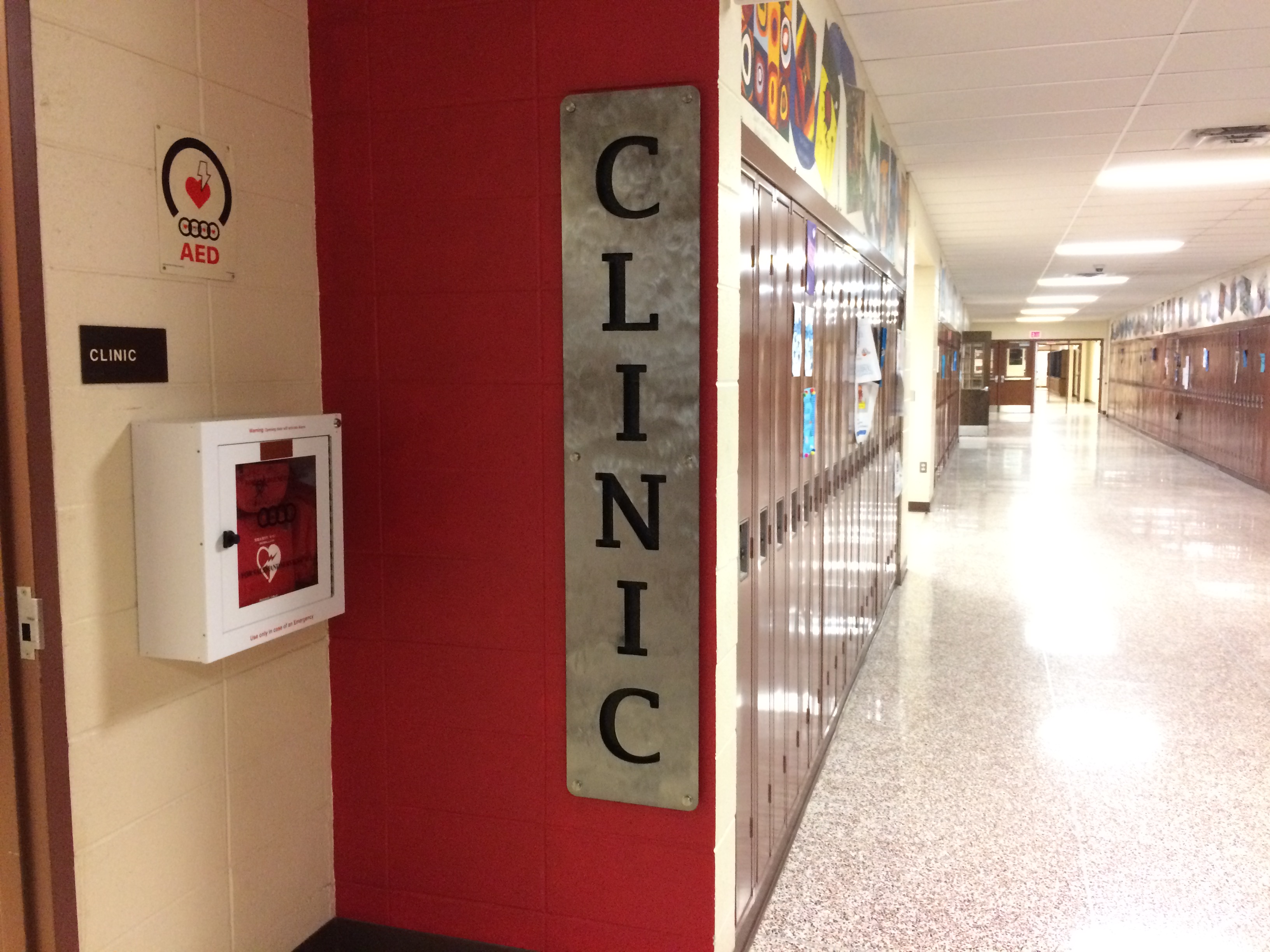 In addition to the H hallway, the wall outside of the clinic entrance has also received new decorations. A new metal sign was made by students in the the schools’ manufacturing capstone class that reads ‘CLINIC’ in bold letters.
