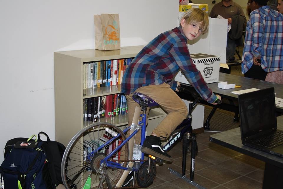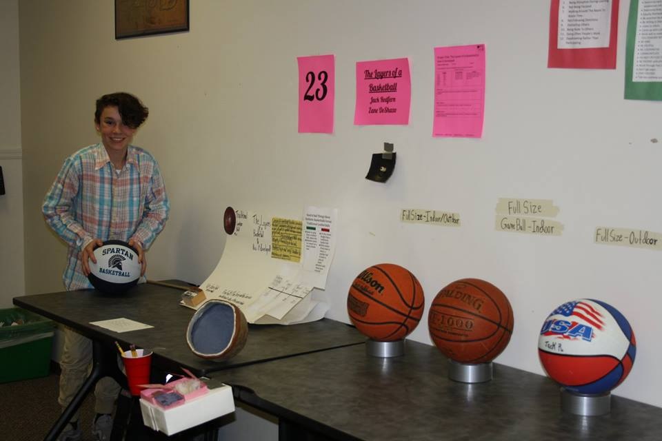 (Top image: Eighth grader Nick Vogel studied physics and economics to create a human-powered pitching machine featured in the Project Showcase Night Nov. 1, 2018 at Pathways Charter School. Photo courtesy of Becky Derlein, Pathways math teacher.)