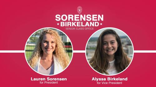 Update: Sorensen and Birkeland won the election and will serve as UW-Madison’s senior class president and vice president for 2019-2020.