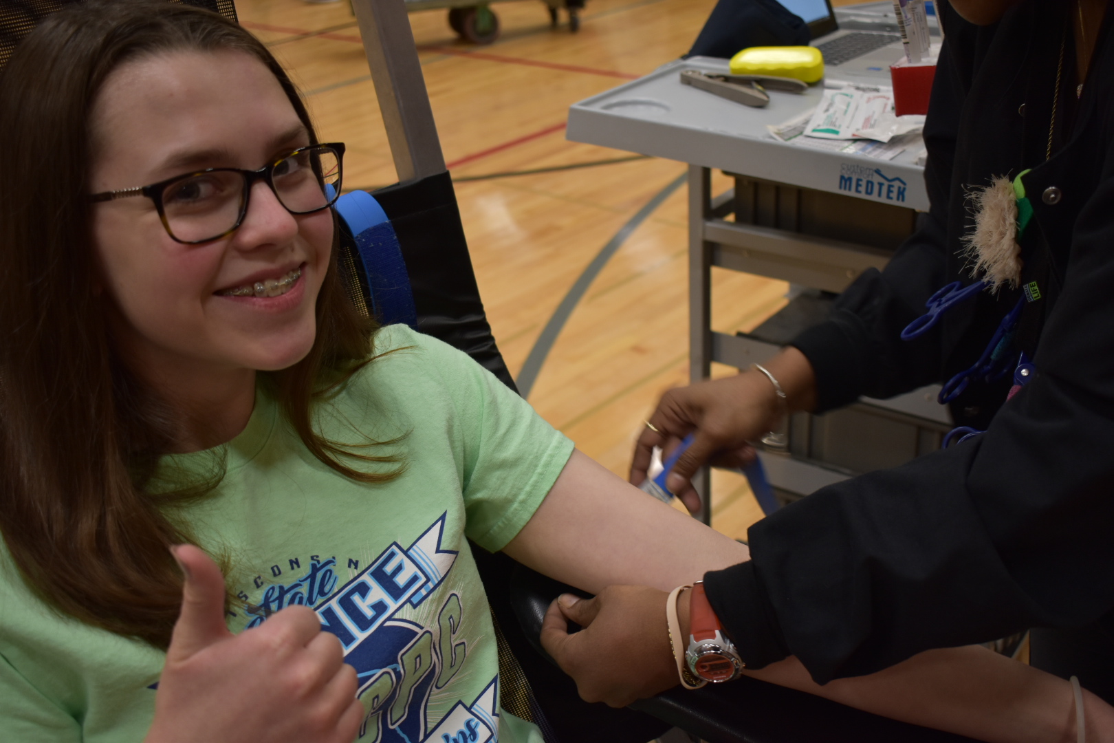 For the 2nd Annual Anatomy Classes’ Blood Drive, students studying human anatomy and medical interventions partnered with the Blood Center of Wisconsin to host a blood drive Thursday at the West Bend High Schools. The drive complemented their academic units on blood, organ donation and “How to Prevail When Organs Fail.”