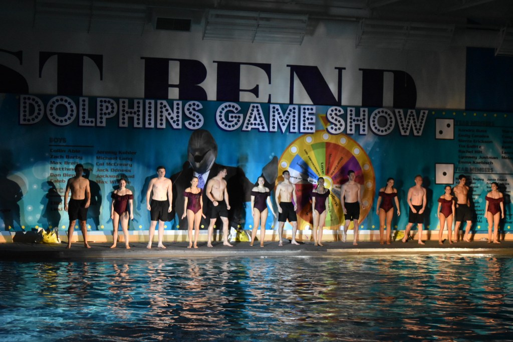 PHOTO ESSAY The theme for the 2019 Dolphins synchronized swim program was “Dolphins Game Show.” The program ran last weekend in the West Bend High Schools natatorium. These photos were taken Saturday by Olivia Langdon, Current Staff.