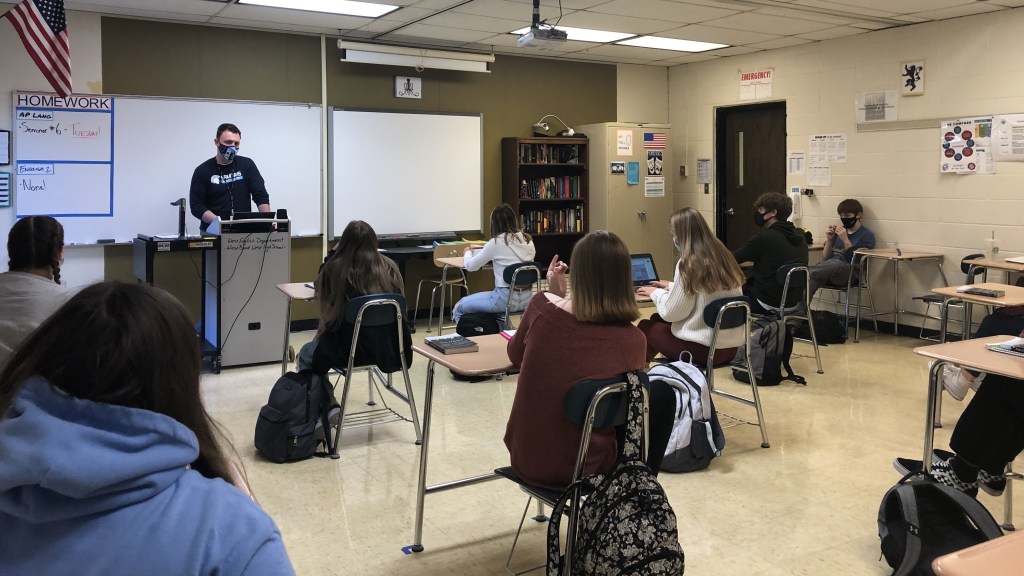 (Top image: West English teacher Blaise Arens leads an in-person cohort on Friday. Photo by Elise Marlett, Current Staff.)