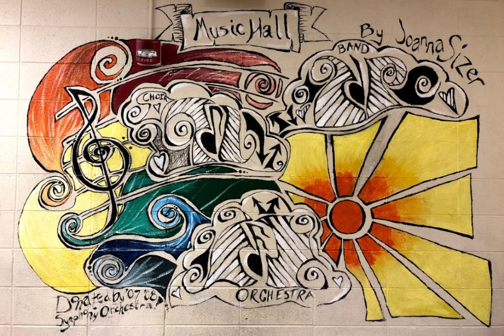 Top image is a mural in the WBHS music hall. Photo courtesy of Tess Breit, choir teacher.