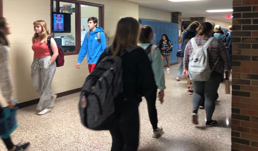 (Top image: West Bend students quickly move through the hallway Wednesday as they hurry to their next class. Photo by Kayla Lemens, Editor in Chief.)