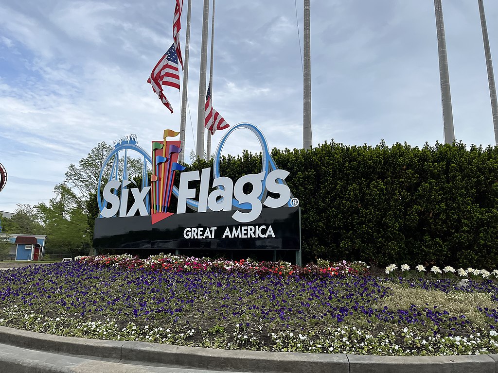 (Image: The main entrance sign at Six Flags Great America in May 2022. Photo used with permission from Harobouri, CC0, via Wikimedia Commons.)
