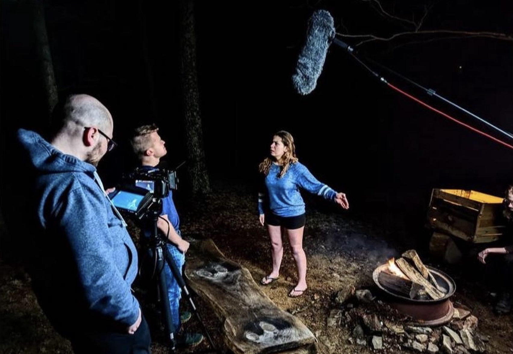 (Top image: Tyler Jach, middle, on the set of “Goodnight, Light” with Jane Lachniche, right, and director Jeffrey Bruck. Photo courtesy of Jach.)