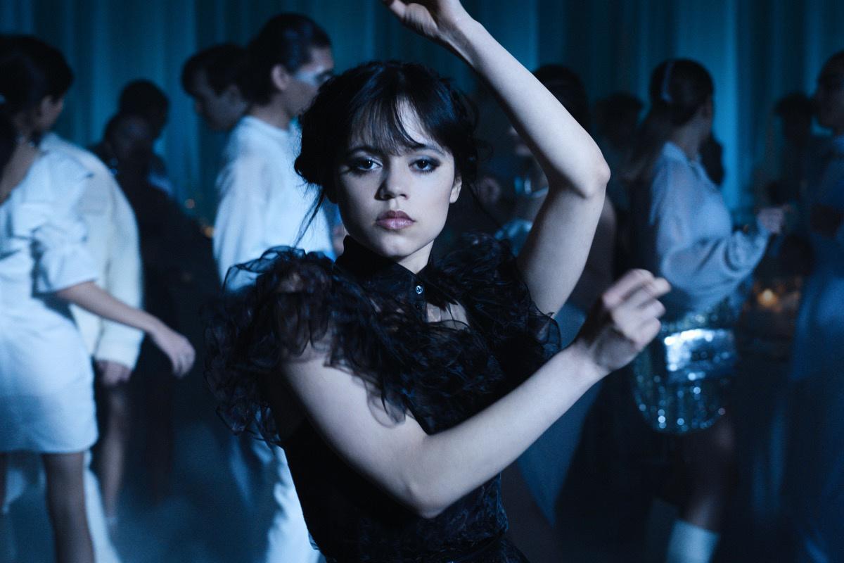 The viral moment in question occurs in the show’s fourth episode, in a scene at a school dance. At the event, Wednesday, played by Jenna Ortega, performs a swirling and chaotic dance that everyone else at the party can’t help but stare at. Her bizarre moves are set to “Goo Goo Muck,” a 1981 song by the Cramps. Ortega said that her dance, which she choreographed herself, was inspired by “Lene Lovich music videos, Siouxsie and the Banshees performances, and (Bob) Fosse.”