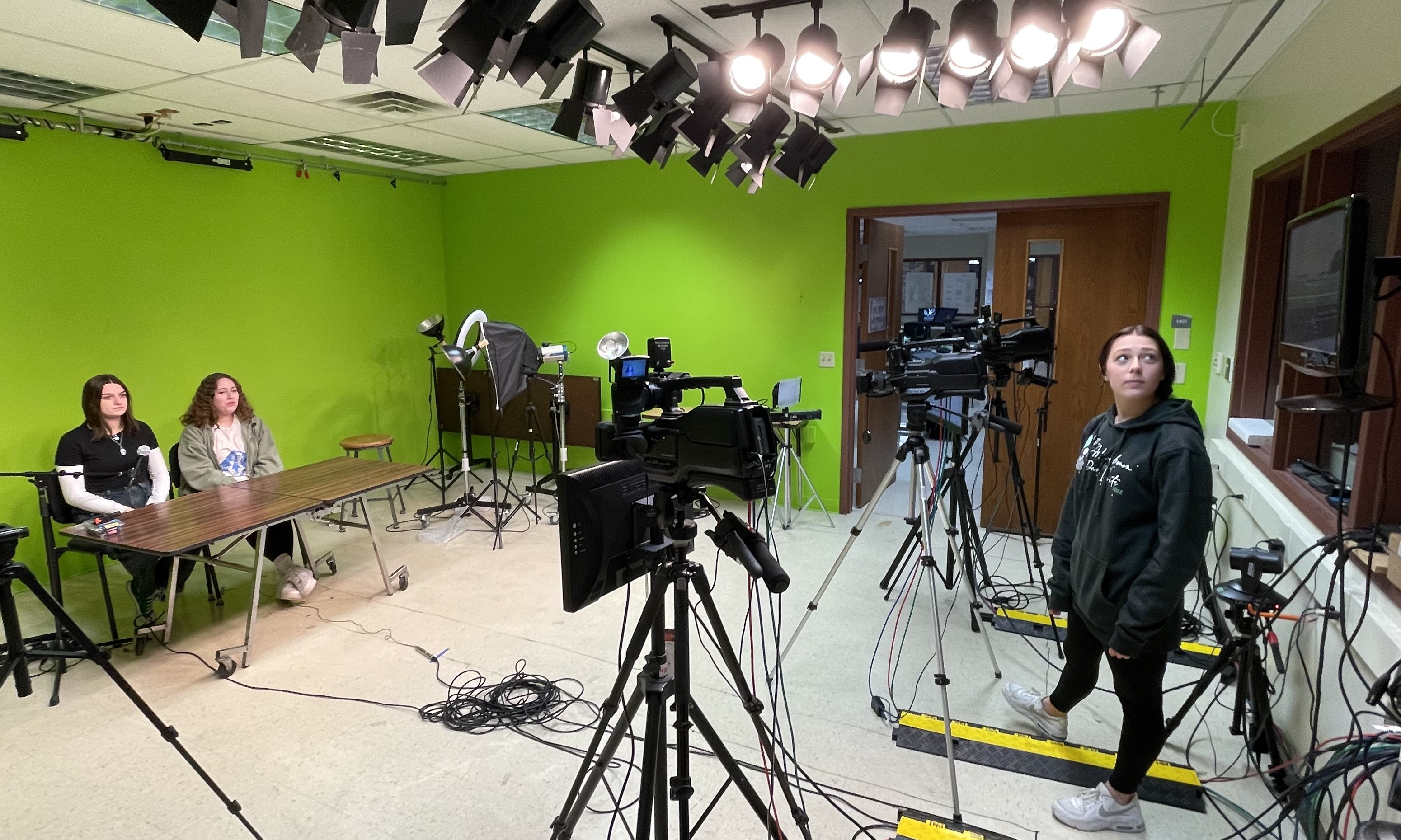 (Top image: Three students prepare for the March 3 video announcements in the WBHS studio. Photo courtesy of Michael Bentdahl.)