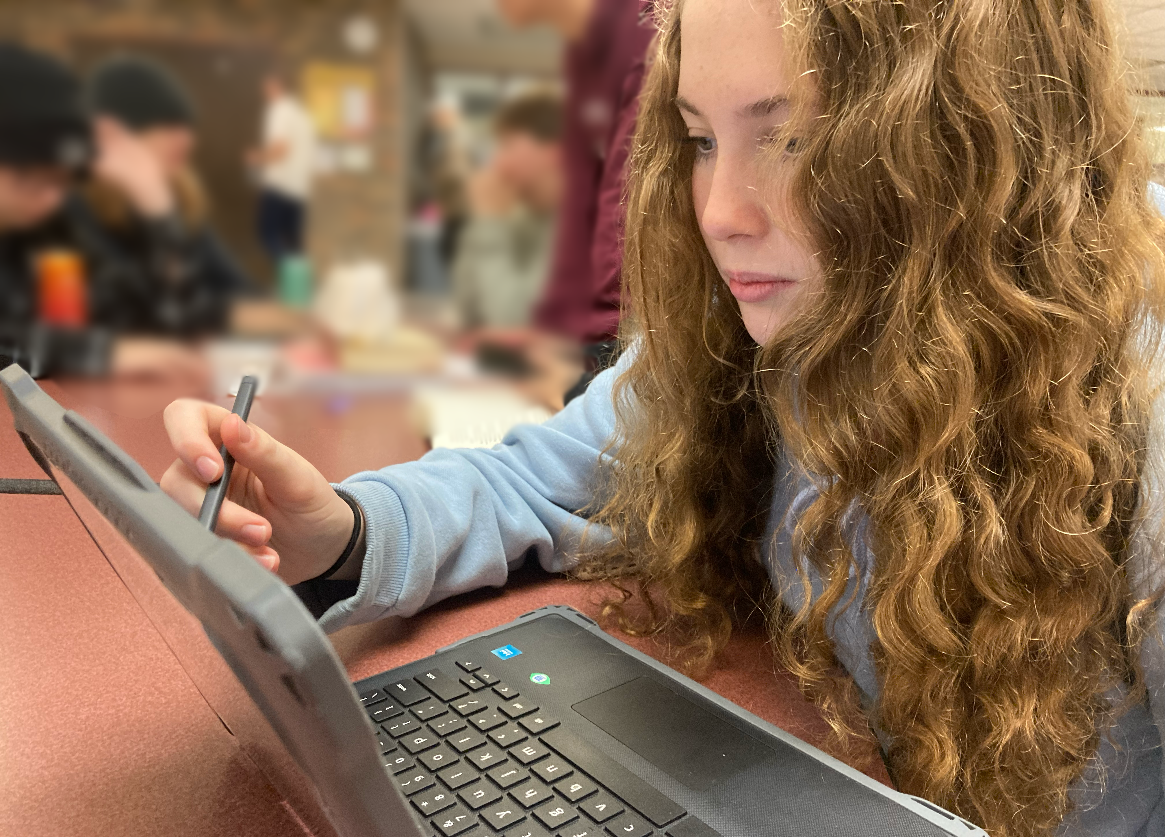 Some upperclassmen look at the new Chromebooks with envy. East junior Cassie Jerich especially wonders why she can’t have a stylus, too.