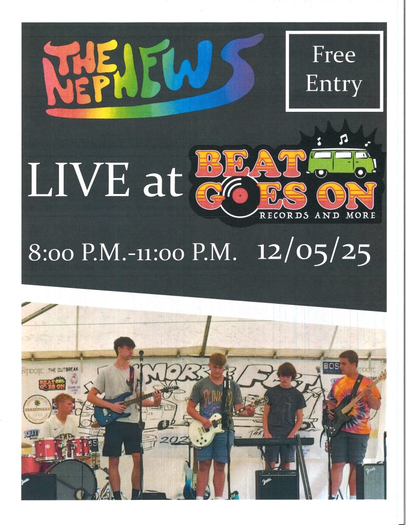The Nephews are a rock band made up of five juniors at the West Bend High Schools. Cole Douglass, Graham Jablonski, Caleb Bitter, Dillinger Floyd and Tommy Zaremba have performed gigs around the area for several years. Their next show is 8 p.m. Friday at The Beat Goes On, a record store in downtown West Bend.