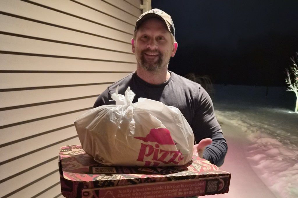 Top image: East science teacher Richard Prost delivers pizza. Photo courtesy of Prost.