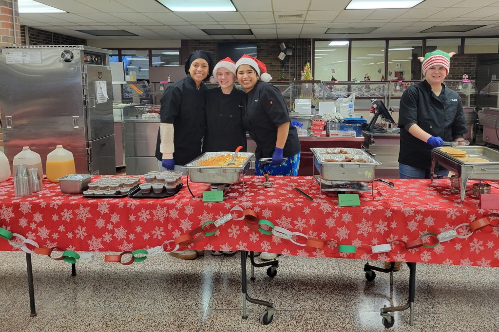 Many people helped to organize this holiday event. Students and teachers from Culinary I and II, Family, Career and Community Leaders of America, Key Club, orchestra and choir combined forces to plan Breakfast with Santa.